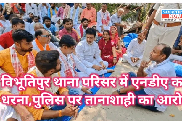 विभूतिपुर थाना परिसर में एनडीए का धरना, पुलिस पर तानाशाही का आरोप