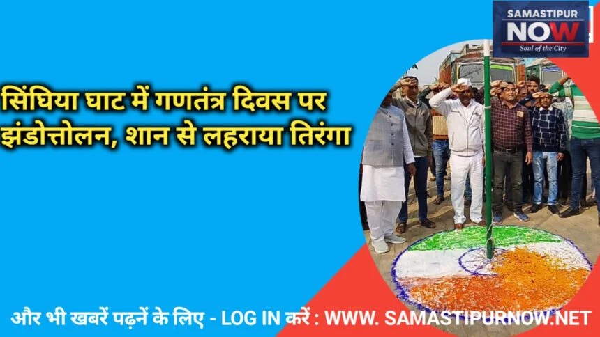 सिंघियाघाट/विभूतिपुर/नवनीत कुमार झा : समस्तीपुर जिले के विभूतिपुर प्रखंड अंतर्गत सिंघिया घाट अंतर्गत भगवान बुद्ध बस पड़ाव परिसर में 77वें गणतंत्र दिवस के अवसर पर हर्षोल्लास के साथ झंडोत्तोलन कार्यक्रम आयोजित किया गया।