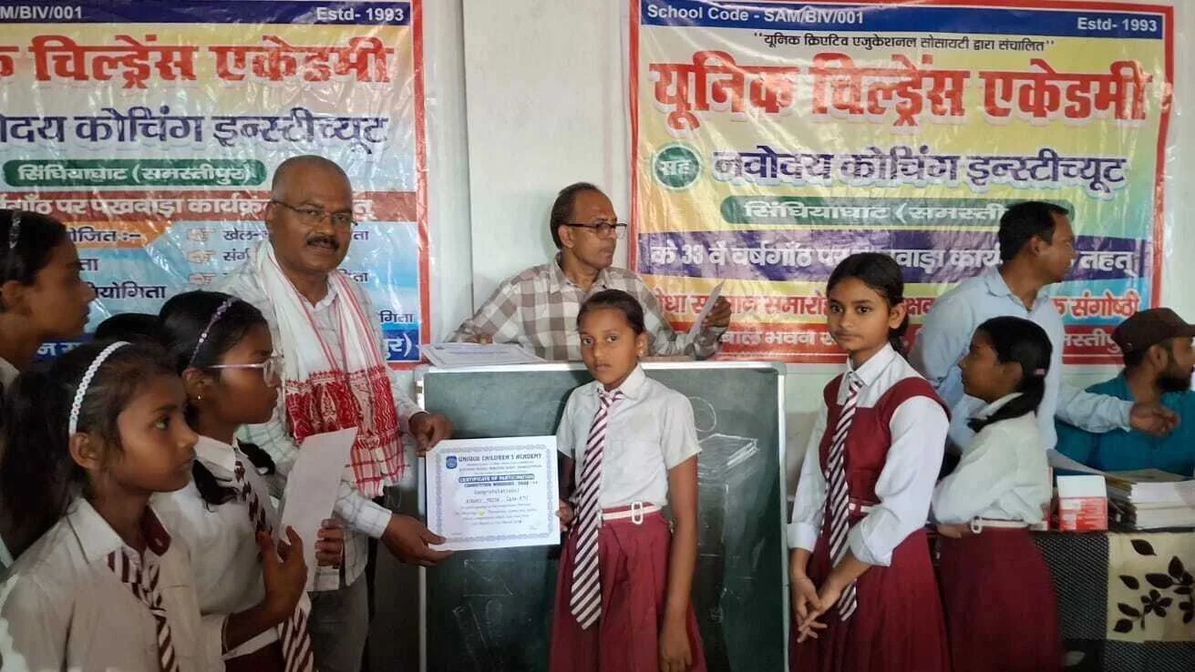 समस्तीपुर/सिंघियाघाट/नवनीत कुमार झा : बिभूतिपुर प्रखंड क्षेत्र अंतर्गत यूनिक क्रिएटिव एजुकेशनल सोसाइटी द्वारा संचालित यूनिक चिल्ड्रेन्स एकेडमी, सिंघियाघाट (समस्तीपुर) के 33वें वर्षगांठ के अवसर पर पखवाड़ा कार्यक्रम के तहत मेधा सम्मान समारोह सह शिक्षक-अभिभावक संगोष्ठी का आयोजन बाल भवन सभागार में किया गया।