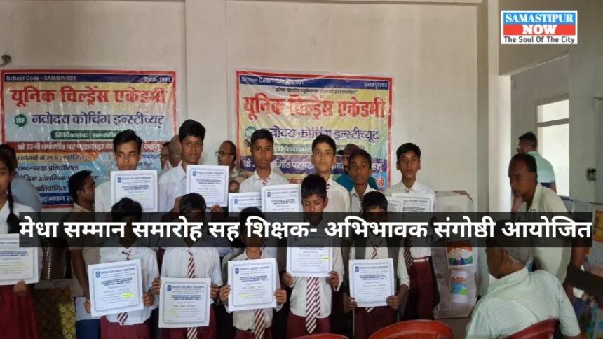समस्तीपुर/सिंघियाघाट/नवनीत कुमार झा : बिभूतिपुर प्रखंड क्षेत्र अंतर्गत यूनिक क्रिएटिव एजुकेशनल सोसाइटी द्वारा संचालित यूनिक चिल्ड्रेन्स एकेडमी, सिंघियाघाट (समस्तीपुर) के 33वें वर्षगांठ के अवसर पर पखवाड़ा कार्यक्रम के तहत मेधा सम्मान समारोह सह शिक्षक-अभिभावक संगोष्ठी का आयोजन बाल भवन सभागार में किया गया।