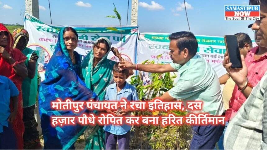 इस अवसर पर एक साथ दस हज़ार से अधिक पौधे रोपित कर पर्यावरण संरक्षण की दिशा में उत्कृष्ट कार्य किया गया।आदर्श पंचायत मोतीपुर ने एक नया कीर्तिमान स्थापित किया है।