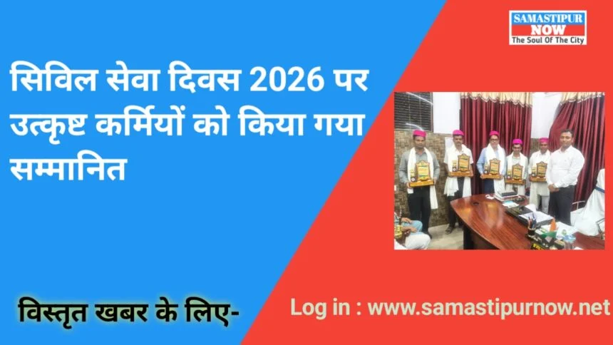 समस्तीपुर/नवनीत कुमार झा : सिविल सेवा दिवस 2026 के अवसर पर मंगलवार को अनुमंडल कार्यालय परिसर में एक गरिमामय समारोह का आयोजन किया गया। कार्यक्रम की अध्यक्षता अनुमंडल पदाधिकारी श्री दिलीप कुमार ने की, जिसमें अनुमंडल क्षेत्र के उत्कृष्ट एवं सराहनीय कार्य करने वाले कर्मियों को सम्मानित किया गया।